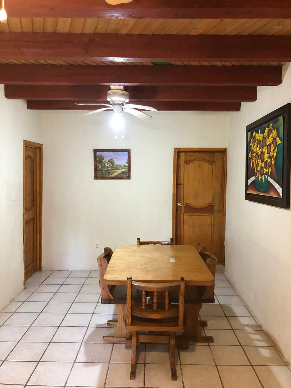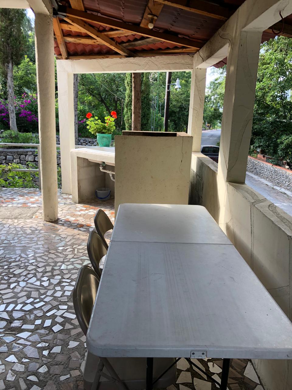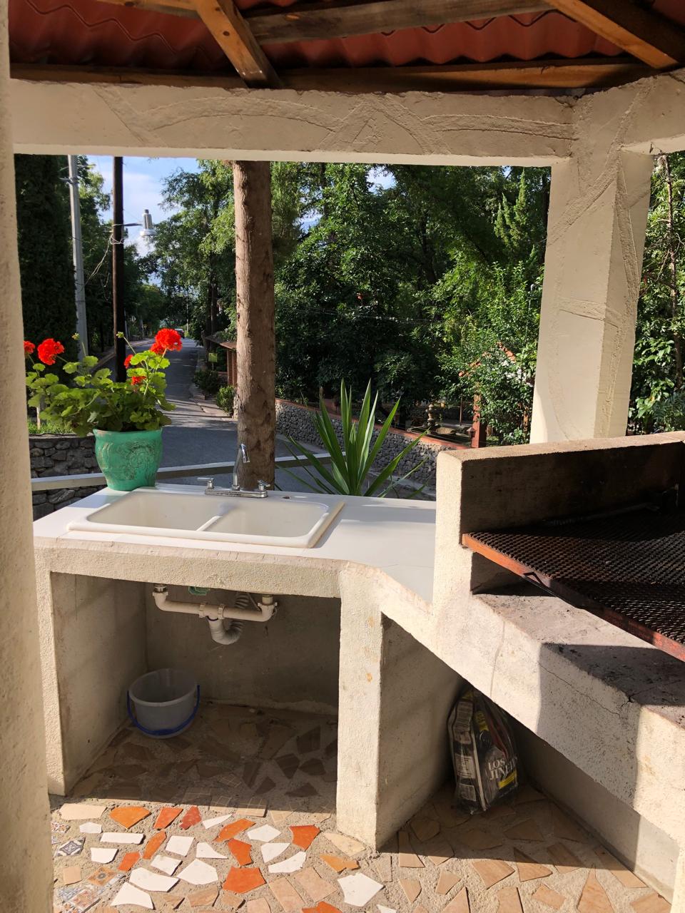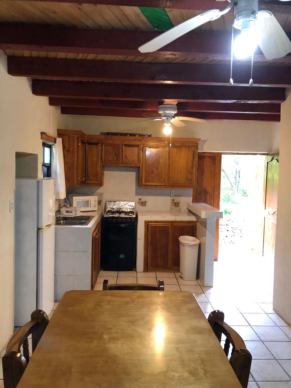 Cuenta con estufa, cocina integral, refrigerador, microondas, regadera, agua caliente y palapa con asador